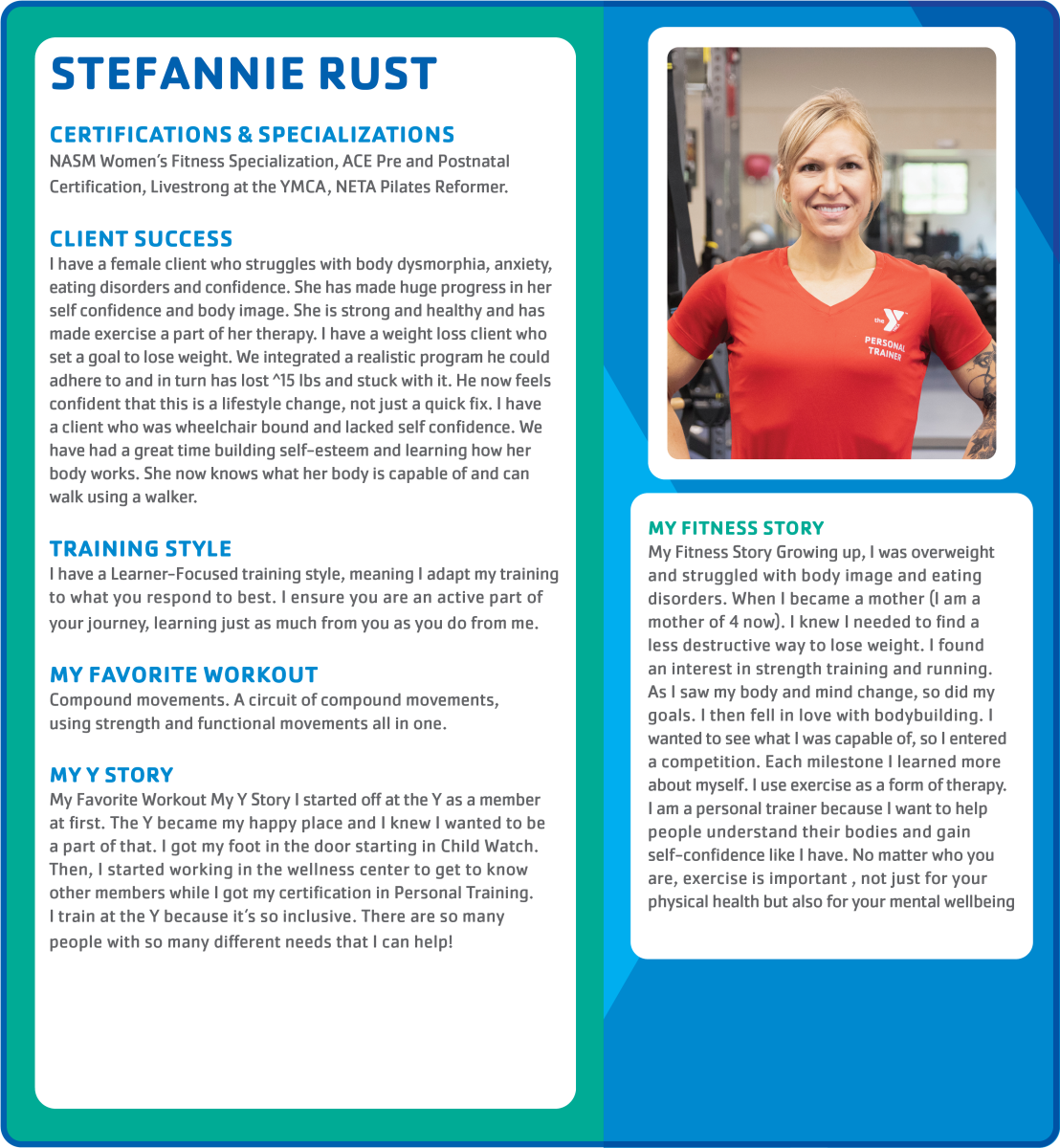 Take the intimidation out of your fitness journey by discovering a personal trainer who fits your lifestyle. The YMCA is here for all, and we have a personal trainer for every lifestyle.